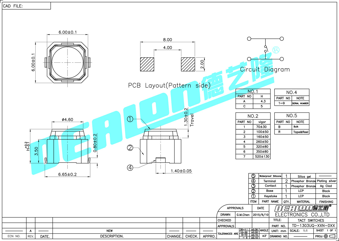 輕觸開關近期在整個廣東開關行業供不應求,許多工廠調不到貨源,為了市場需求我司現擴大生產,專業供應額溫槍上用的幾款輕觸開關,規格有4.5*4.5*3.8、4.5*4.5*6、.5*4.5*8、6*6*4、6*6*5、6*6*6、6*6*7、6*6*8、6.2*6.2*3.1、6.2*6.2*3.5等多款輕觸按鍵開關。除此之外作為開關廠家我司還有大量生產撥動開關,按鍵開關,DC插座,耳機插座,微動開關等。