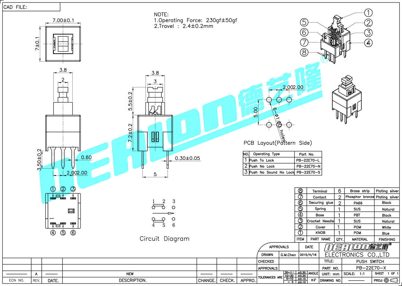 下面給大家分享一下我們家的自鎖開(kāi)關(guān) PB-22E70的尺寸圖: