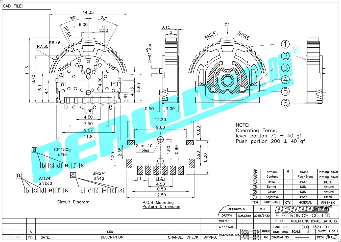 4-direction-20°-0°+20° Center push0.7mm±0.1mm